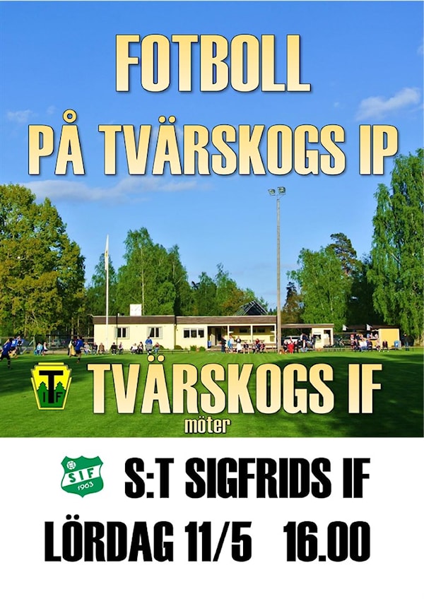 Tvärskogs IF möter S:t Sigfrid lördag 11 maj.