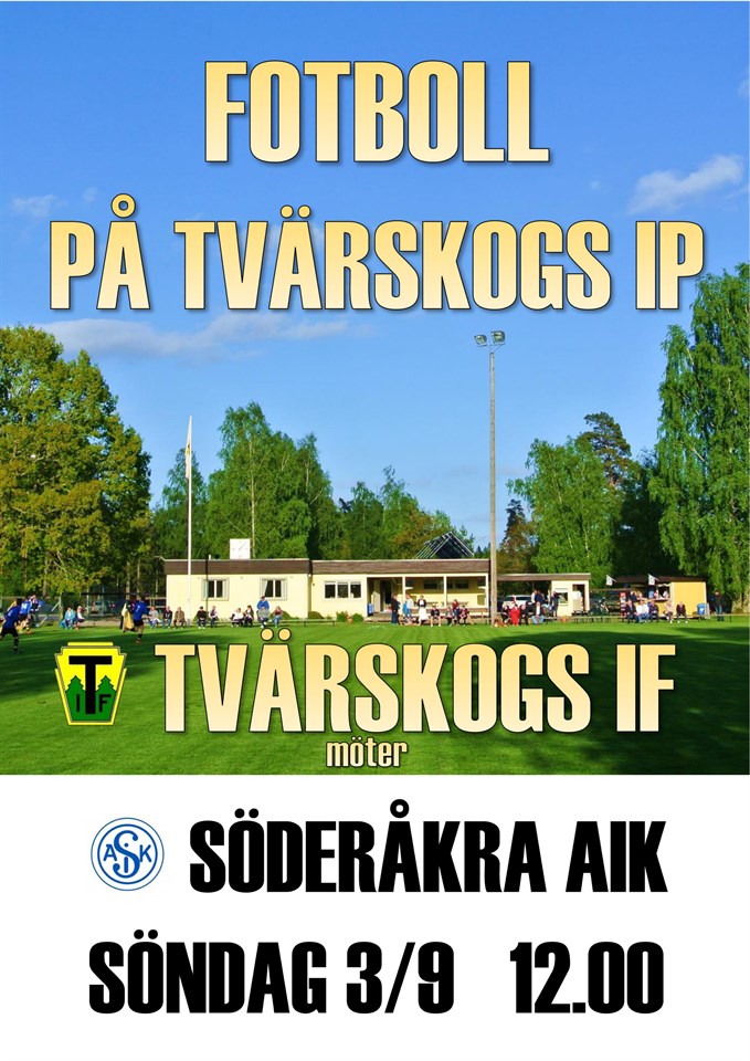 • Tvärskogs IF möter Söderåkra AIK 3/9 12.00
