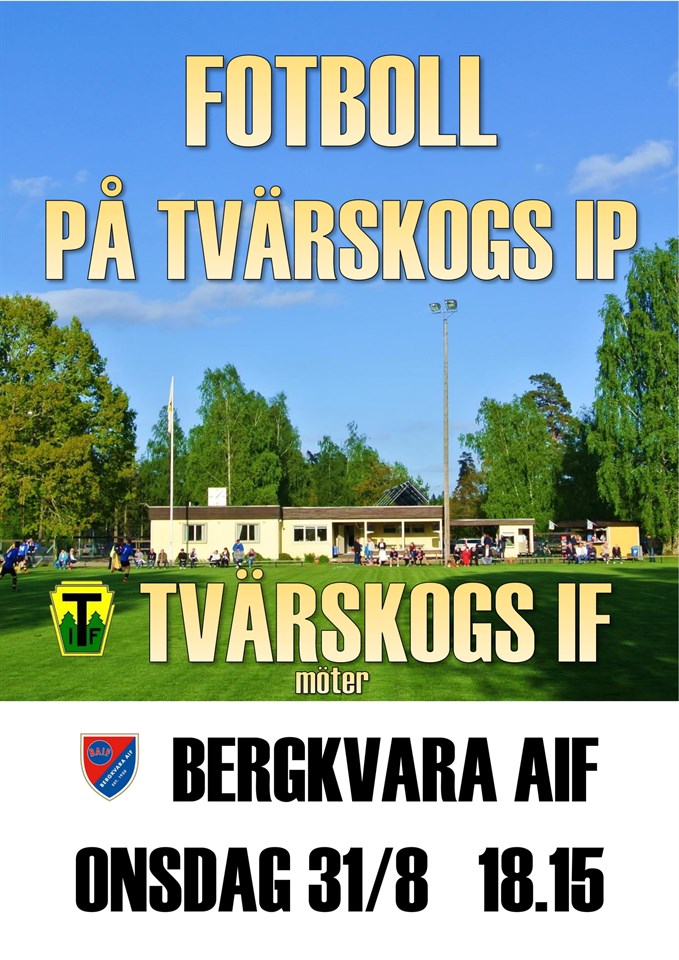 • Tvärskogs IF möter Bergkvara AIF 31/8 18.15
