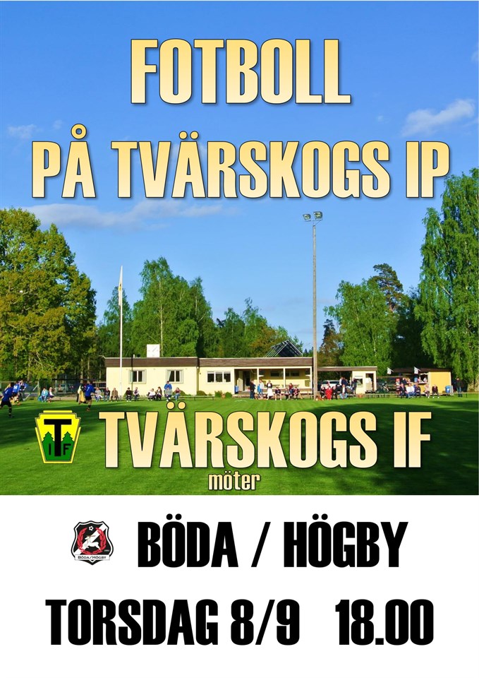 • Tvärskogs IF möter Böda-Högby 8/9 18.00